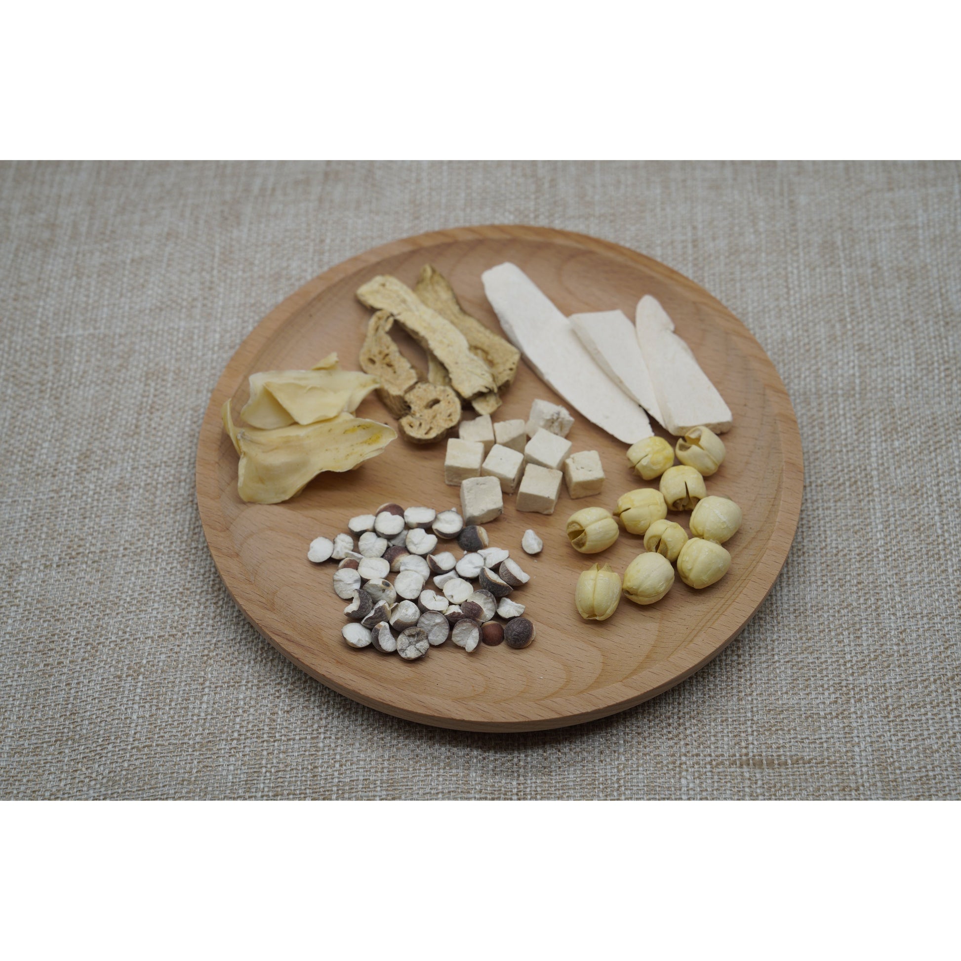 Poria, Chinese yam, Atractylodes Rhizome, Lotus seeds, Gordon Euryale seeds, Lily bulbs