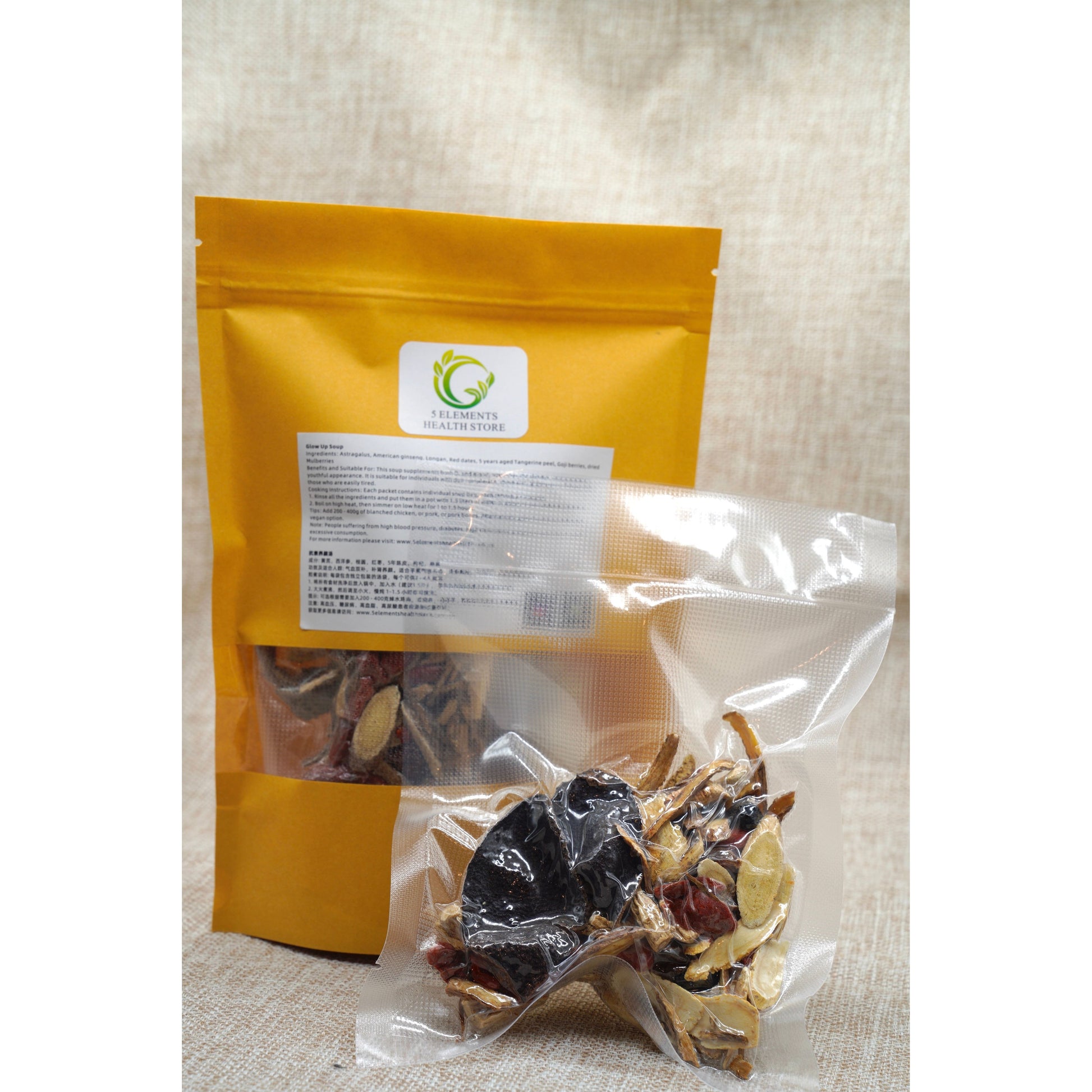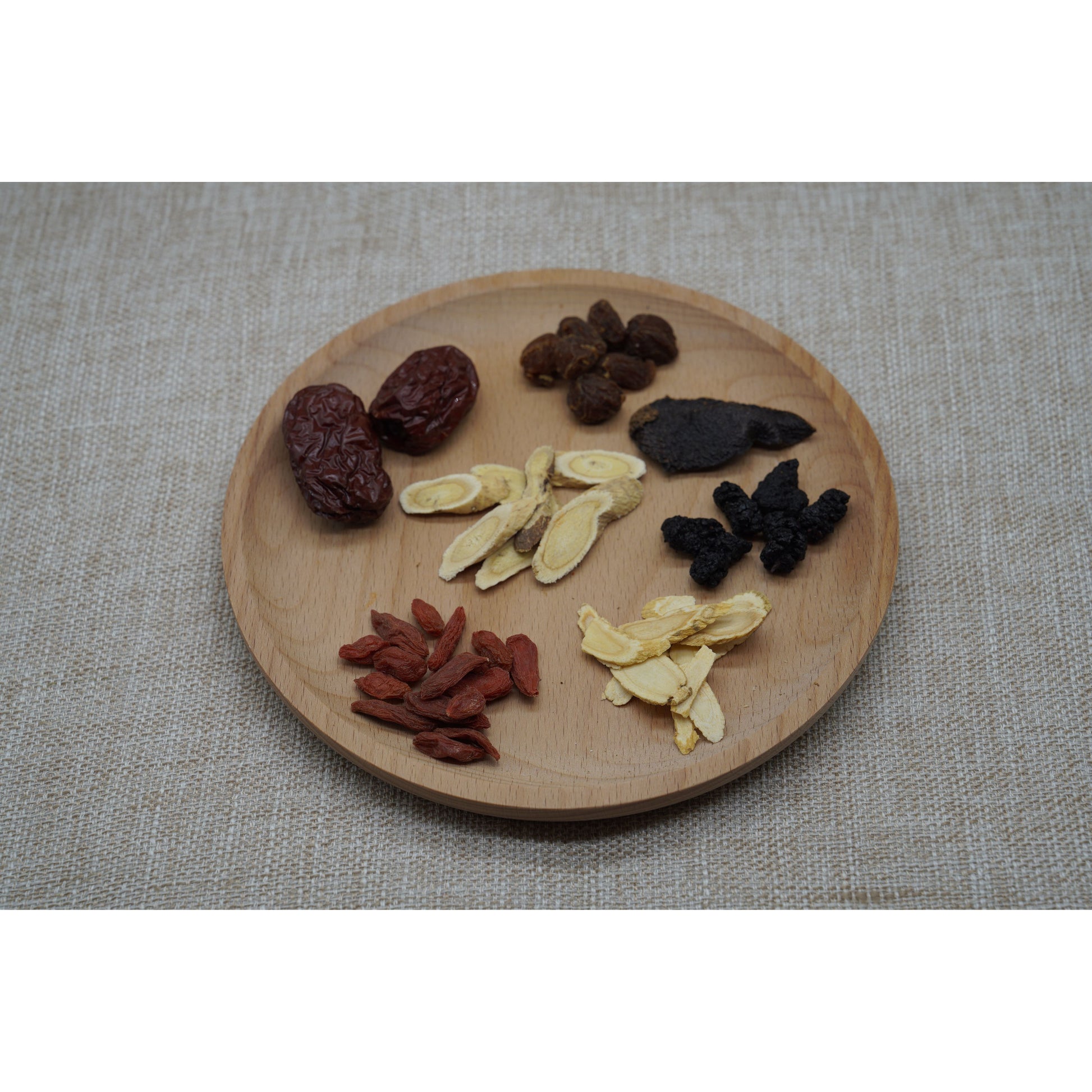 Astragalus, American ginseng, Longan, Red dates, 5 years aged Tangerine peel, Goji berries, dried Mulberries